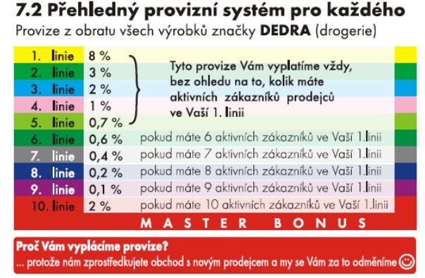 - Provize se počítají z objednaných výrobků značky DEDRA každého aktivního zákazníka po odečtení slev a DPH
